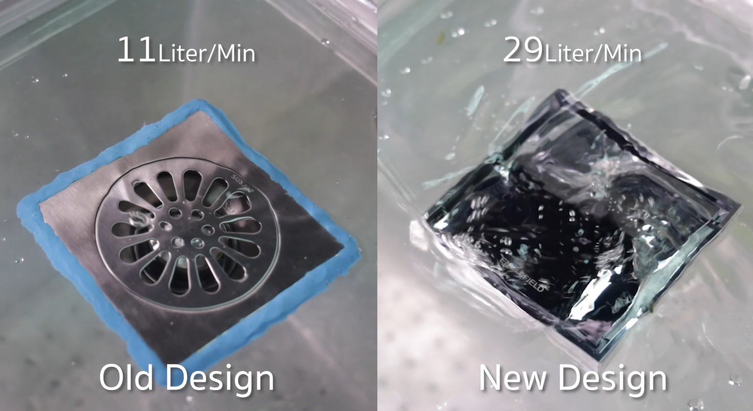 ดังนั้นเมื่อพบจุดบกพร่องดังกล่าว จึงเกิดการออกแบบระบบระบายน้ำและป้องกันกลิ่นที่ สามารถระบายน้ำได้เยอะกว่า และสามารถปิดกั้นได้โดยไม่ใช้งาน อีกทั้งสามรถป้องกันแมลงในการย้อนน้ำได้มีประสิทธิภาพมากที่สุด นำมาสู่ High performance Floor drain ที่เปลี่ยนการระบายน้ำจากใช้น้ำมาเป็นเป็นแบบฝาเปิด – ปิด ที่มีความสามารถป้องกันกลิ่นโดยไม่มีปัญหาการระเหยของน้ำ ระบายน้ำได้เร็วยิ่งกว่าเท่าตัว หมดปัญหาน้ำล้น และ มีอไหล่ไว้สามารถทำการดูแลรักษาได้ง่าย