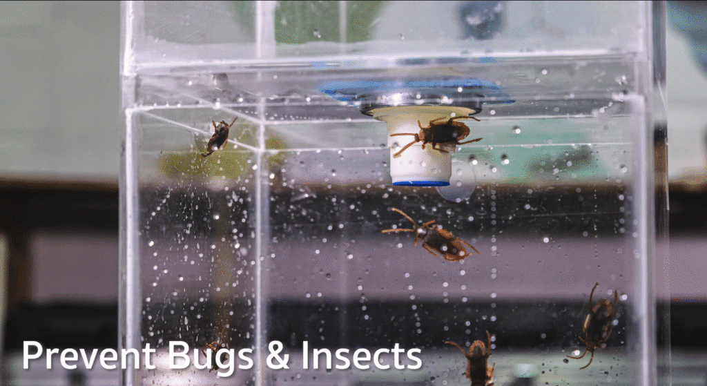 จากระบบดังกล่าวที่เป็นการเปิด-ปิดก็ทำให้สามารถป้องกันการเข้ามาของแมลงหรือสิ่งมีชีวิตได้เนื่องจากไม่มีช่องทางผ่าน หรือ ระยะป้องกันของน้ำที่สั้นเหมือนระบบสมัยก่อน