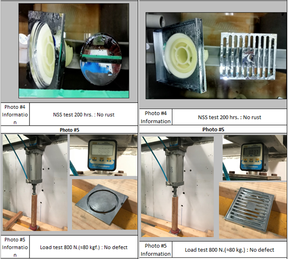 นอกเหนือไปจากนี้ยังมีการทดสอบความสามารถในการทนละอองเกลือกว่า 200 ชม เพื่อดูความทนทานในการใช้งานไม่ให้เกิดสนิม ซึ่งสามารถผ่านการทดสอบได้อย่างสมบูรณ์แบบ และสำหรับการใช้งานในชีวิตประจำวันห้ามใช้น้ำยาล้างห้องน้ำที่มีส่วนผสม กรด Hydrochloric  (กรดเกลือ) กับ Sulfuric (กรดกำมะถัน) กับผลิดภัณฑ์โดยตรง  เนื่องจากมีฤทธิ์กัดกร่อนพื้นผิวเคลือบทำให้อายุการใช้งานและความสวยงามสินค้าสั้น เฉพาะสินค้า แม้กระทั่งยาแนวกระเบื่อง เพืยงแค่ถูกการใช้งานโดยสัมผัสโดยตรงก็ยังถูกกัดกร่อนให้บางลงเรื่อยๆ อีกทั้งสารดังกล่าว ยังเกิดไอระเหยที่มีโอกาสไปเกาะจับกับแปรงสีฟังหรือผ้าเช็ดหน้าและส่งผลกระทบต่อผู้ใช้แบบสะสมสงผลต่อสุขภาพในระยะยาวได้