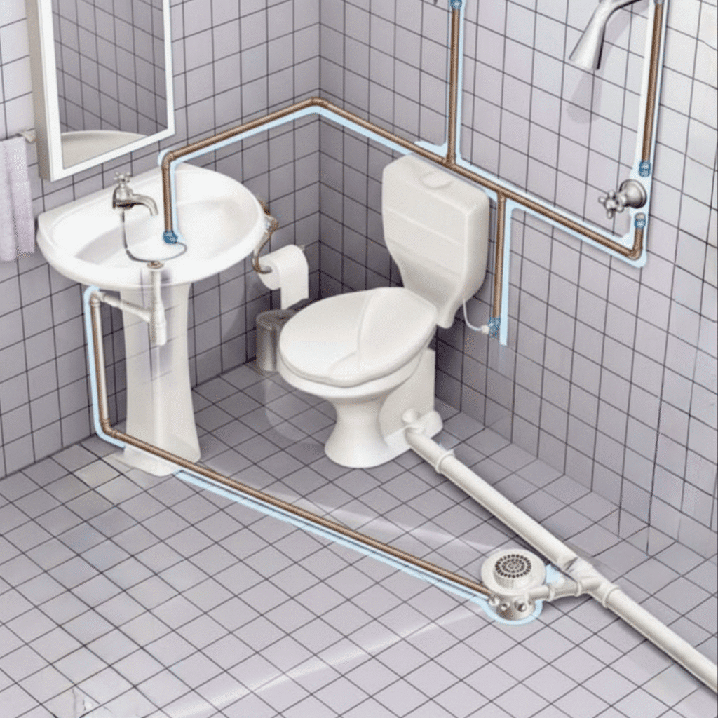 โดยทั่วไปการระบายของเสียออกจากห้องน้ำไปสู่ถังบำบัดน้ำเสียจากห้องน้ำ จะมี 3 จุดหลักๆ คือ