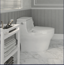 - สุขภัณฑ์ชิ้นเดียว (One-Piece): หล่อขึ้นรูปเป็นชิ้นเดียว ไร้รอยต่อ ลดการสะสมของเชื้อโรค ดีไซน์สวยทันสมัย ทำความสะอาดง่าย แต่ราคาสูงกว่า เนื่องจากผลิตยากกว่าและโอกาสสำเร็จจาการอบความร้อนสูงมีน้อยกว่า สุขภัณฑ์ 2 ชิ้น